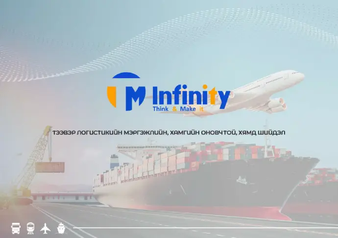 Ти Эм Инфинити ХХК нь 2019 оны 1-р сард байгуулагдсан бөгөөд олон улсын тээвэр зууч, логистикийн салбарт өргөн цар хүрээ бүхий үйлчилгээ үзүүлдэг 100% дотоодын хөрөнгө оруулалттай олон улсын тээвэр зуучийн компани юм.
